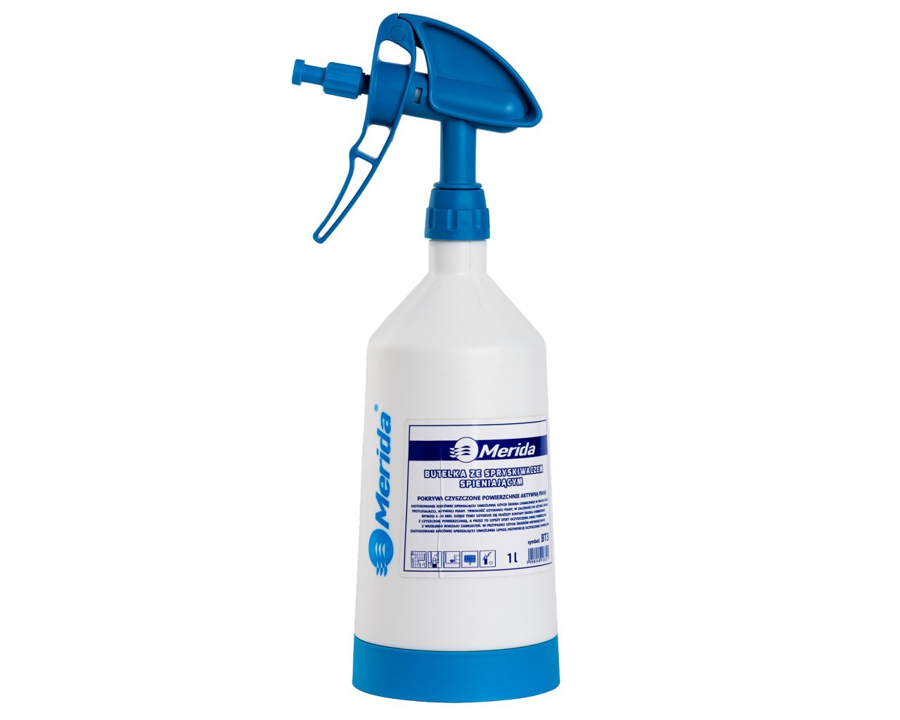 Butelka ze spryskiwaczem spieniającym dwustronnym, niebieska, wyskalowana, pojemność 1 l