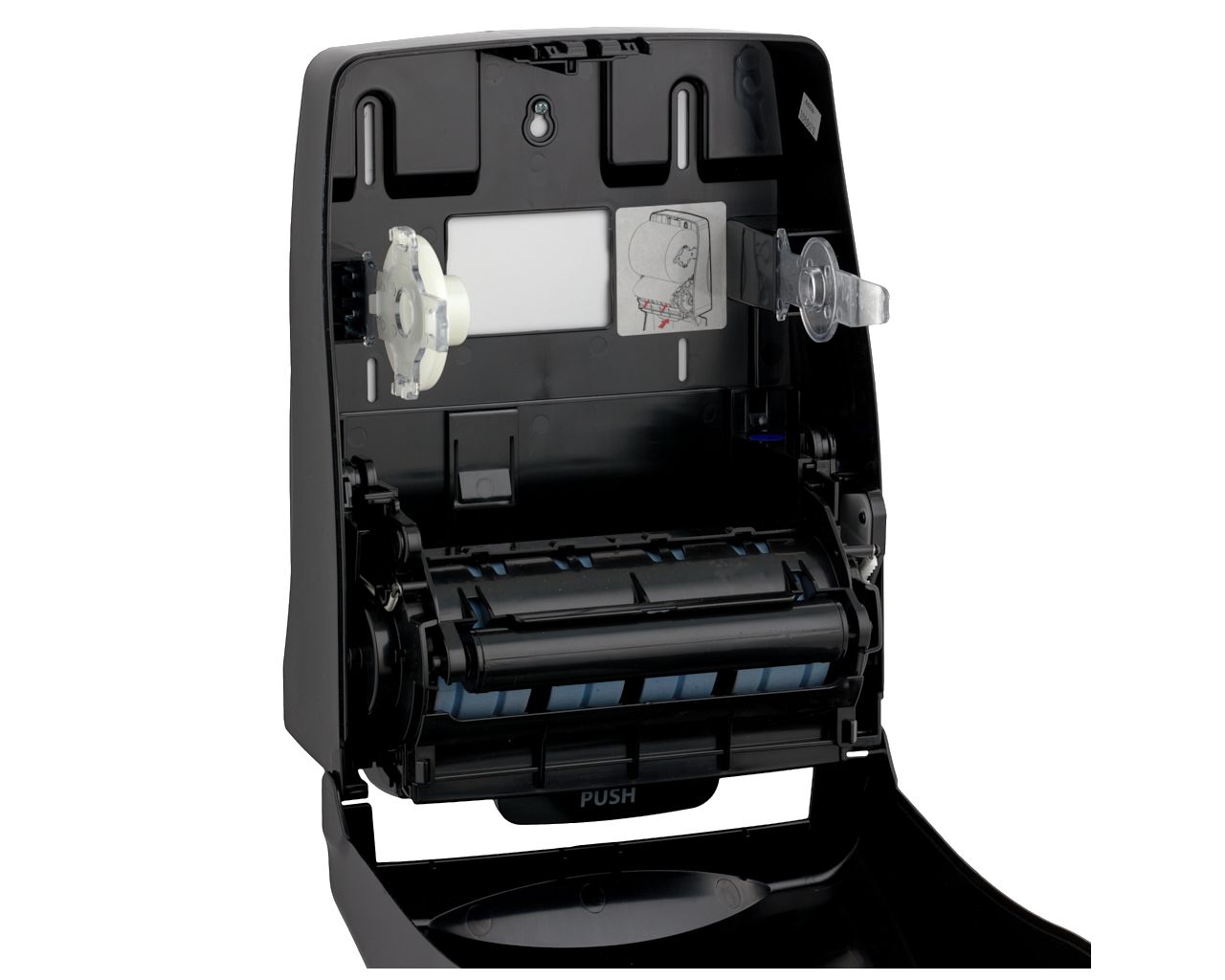 - w sytuacji awaryjnej ręcznik można wysunąć przez naciśnięcie dźwigni PUSH, znajdującej się w dolnej części podajnika
