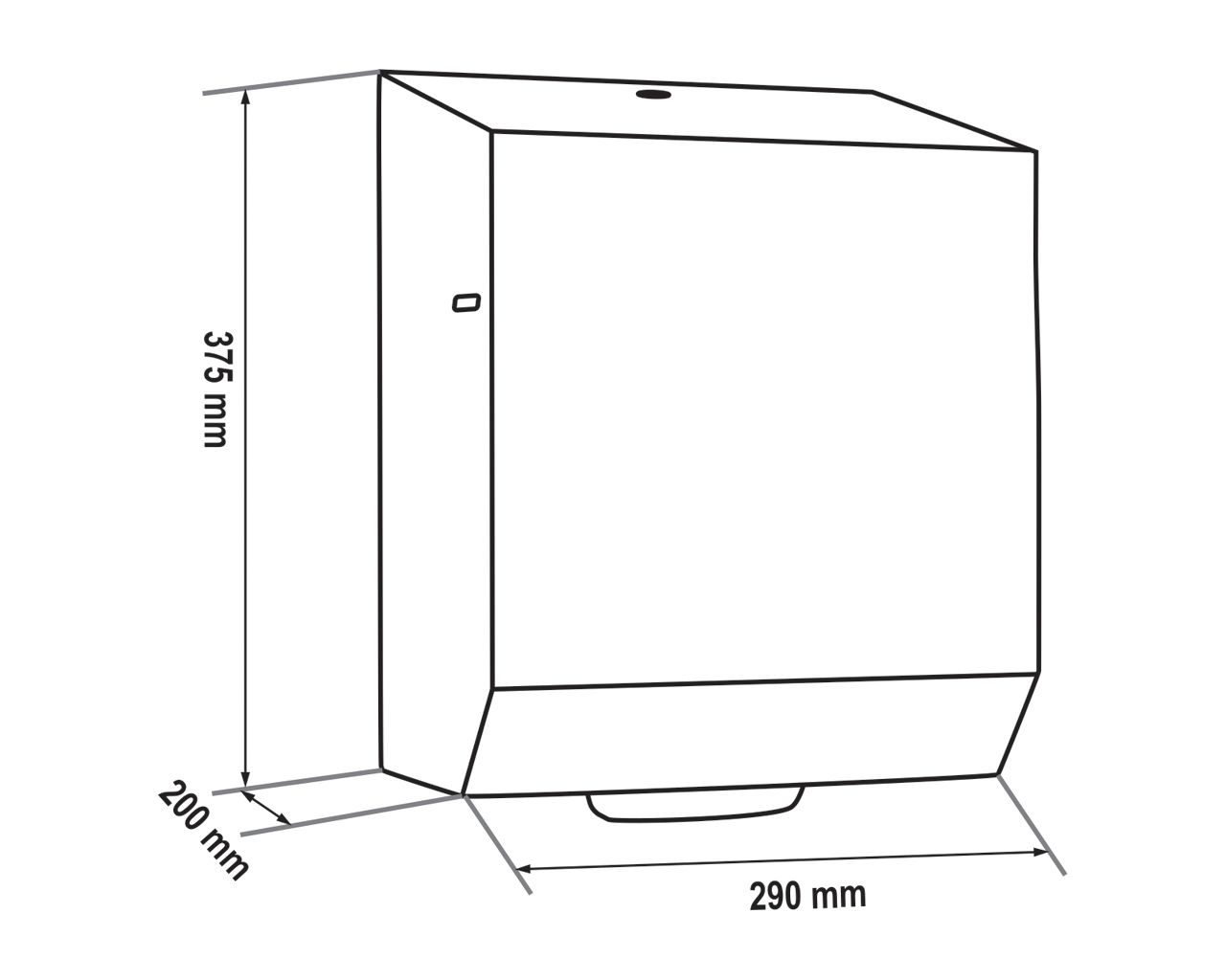 Mechaniczny podajnik ręczników papierowych zapewnia higieniczne użytkowanie, dotykany jest tylko pobierany ręcznik. Pobranie ręcznika uruchamia mechanizm odcinający listek o długości 25,5 cm. Urządzenie charakteryzuje się cichą i delikatną pracą mechanizmu odcinającego. W sytuacji awaryjnej ręcznik można wysunąć przez naciśnięcie dźwigni PUSH, znajdującej się w dolnej części podajnika. Uchwyt rolki wyposażony w system ułatwiający zakładanie ręcznika. Podajnik ma łatwy dostęp do mechanizmu tnącego umożliwiający bezproblemowe czyszczenie oraz konserwację urządzenia. Wykonany ze stali nierdzewnej. Obudowa pokryta specjalną strukturalną białą powłoką. Podajnik ręczników zabezpieczony jest trwałym stalowym zamkiem bębenkowym. Zamek zlicowany z powierzchnią urządzenia. Łączenia boków podajnika ręczników są spawane i szlifowane. Urządzenie posiada niewidoczne zawiasy. Zamykany na kluczyk.