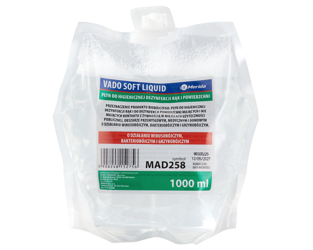 MERIDA VADO SOFT bezalkoholowy płyn do higienicznej dezynfekcji rąk i powierzchni, jednorazowy wkład 1000 ml
