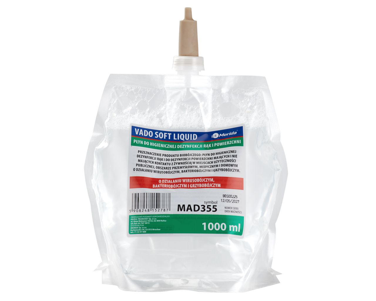 MERIDA VADO SOFT bezalkoholowy płyn do higienicznej dezynfekcji rąk i powierzchni, jednorazowy wkład 1000 ml