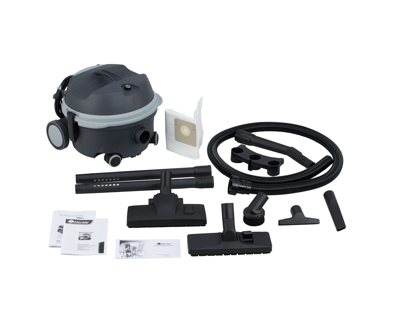 Profesjonalny odkurzacz przeznaczony do zbierania kurzu i małych osadów. Łatwy w użyciu, posiada komplet akcesoriów. Zapewnia skuteczne, szybkie i kompleksowe czyszczenie. Niewielkie rozmiary, niski poziom hałasu (57 db) oraz praktyczny uchwyt na akcesoria czyni z niego doskonałe urządzenie do pracy w hotelach, pensjonatach, domach wypoczynkowych itp. Spełnia normy hotelowe dotyczace poziomu hałasu.