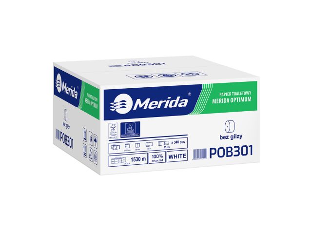 Papier toaletowy bez gilzy MERIDA OPTIMUM, biały, średnica 12 cm, długość 85 m, dwuwarstwowy, karton 18 szt., ECOLABEL
