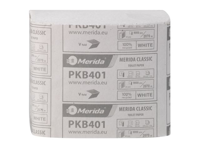 Papier toaletowy w listkach, MERIDA CLASSIC ECOLABEL, jednowarstwowy, biały, karton 9000 szt.