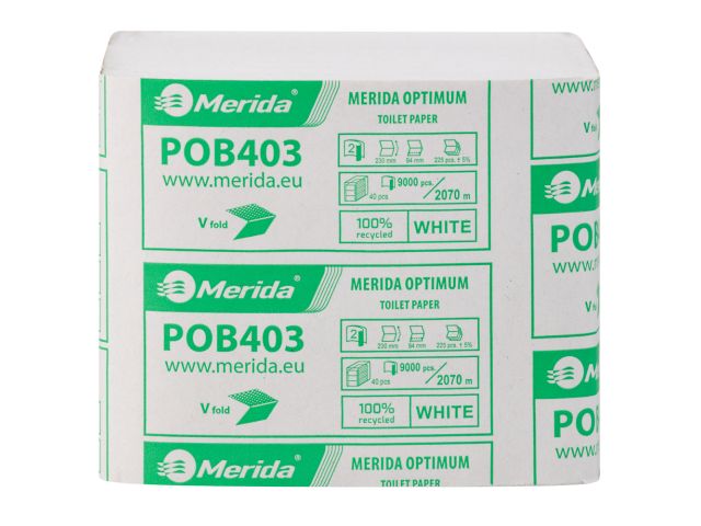 Papier toaletowy w listkach, MERIDA OPTIMUM ECOLABEL, dwuwarstwowy, biały, karton 9000 szt.