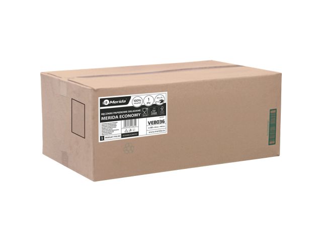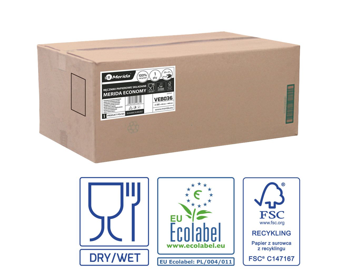 Ręczniki papierowe składane w V, MERIDA ECONOMY ECOLABEL, jednowarstwowe, białe, karton 4000 szt.