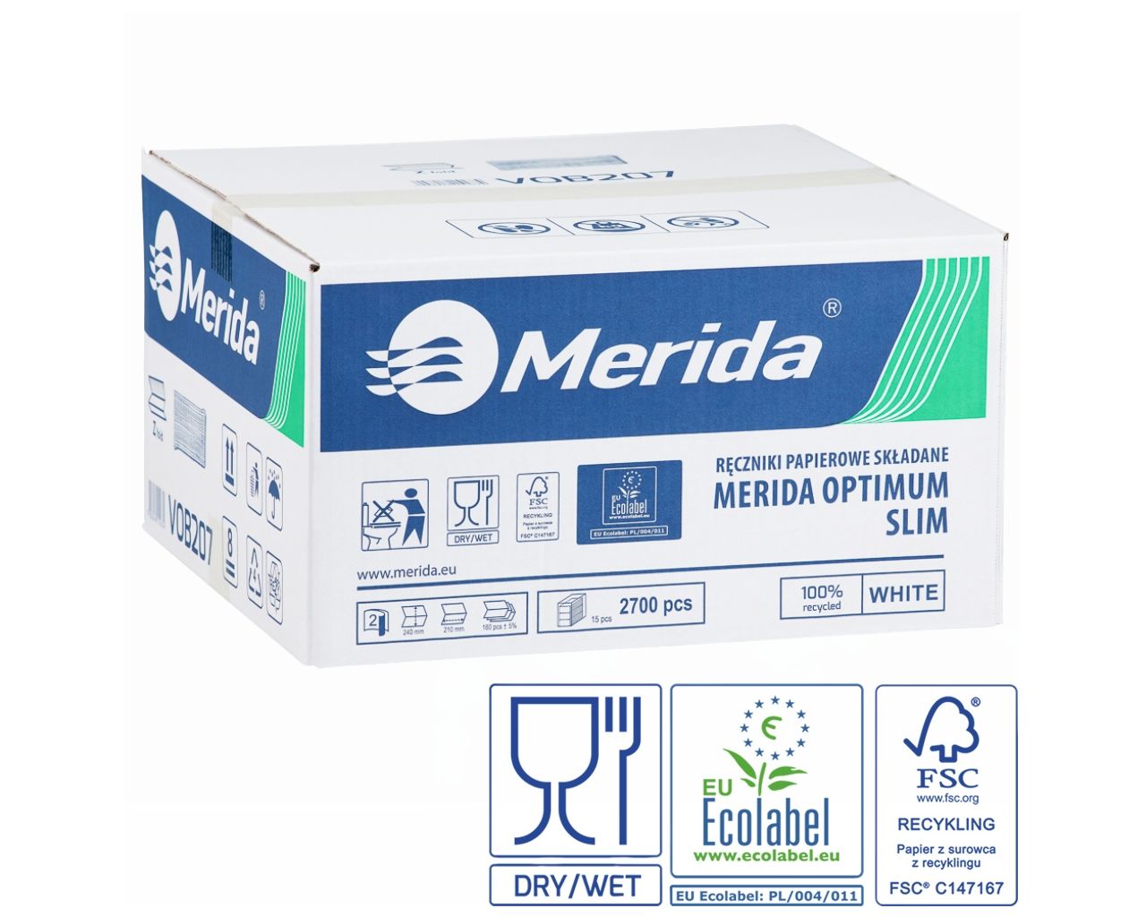 Ręczniki papierowe składane w Z, MERIDA OPTIMUM SLIM ECOLABEL, dwuwarstwowe, białe, karton 2700 szt.