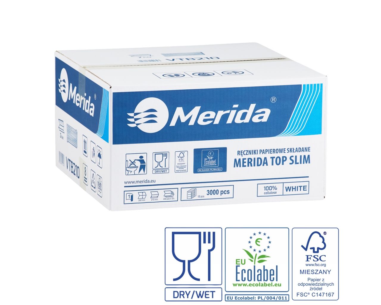 Ręczniki papierowe składane w Z, MERIDA TOP SLIM ECOLABEL, jednowarstwowe, białe, karton 3000 szt.