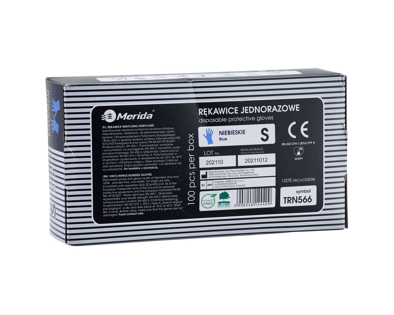 - rękawice winylowo-nitrylowe, bezpudrowe, niesterylne