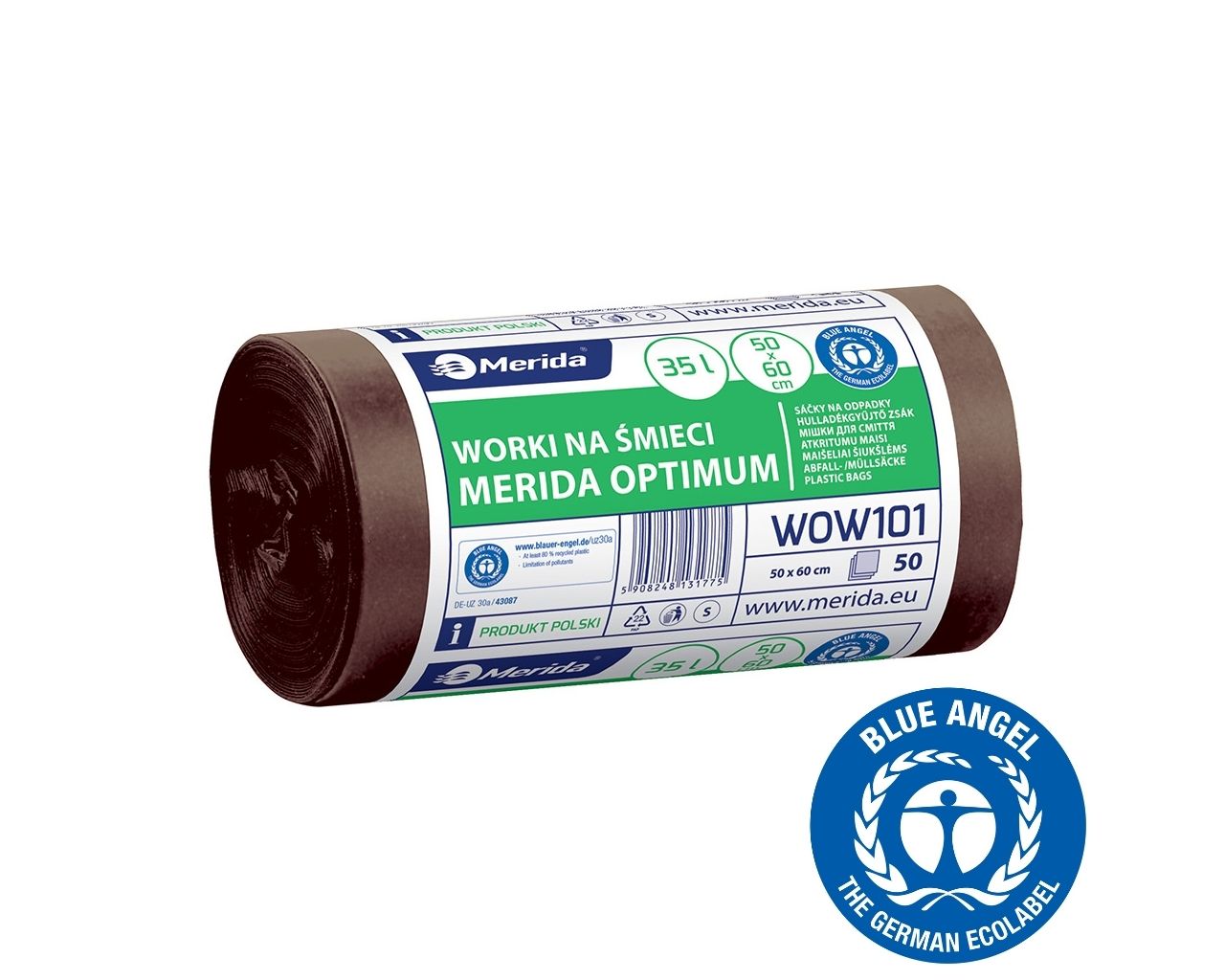 Worki na bioodpady 35 l, MERIDA OPTIMUM BLUE ANGEL, brązowe, 50x60 cm, rolka 50 szt.