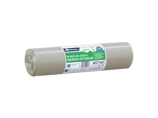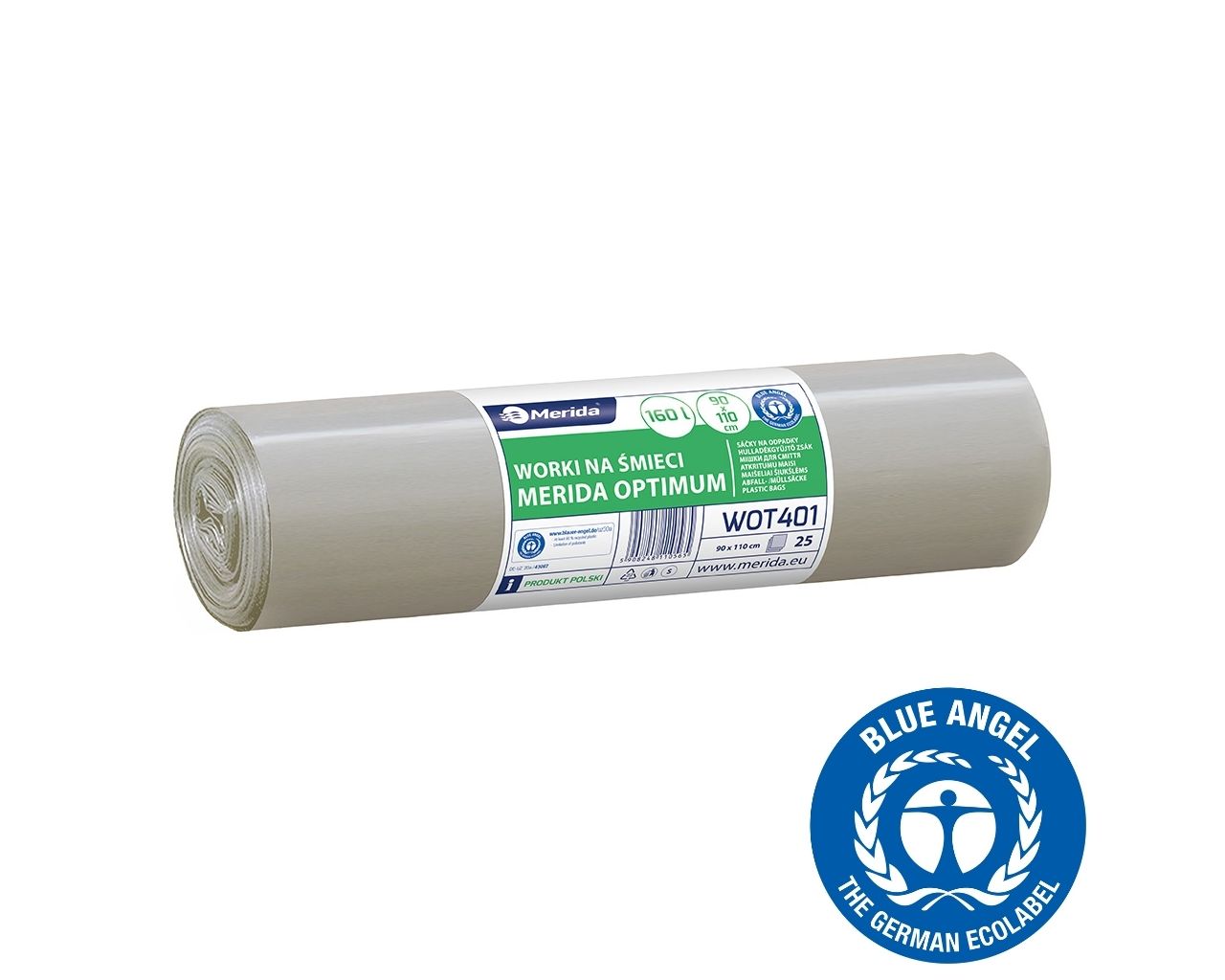 Worki na śmieci 160 l, MERIDA OPTIMUM BLUE ANGEL, bezbarwne, 90x110 cm, rolka 25 szt.