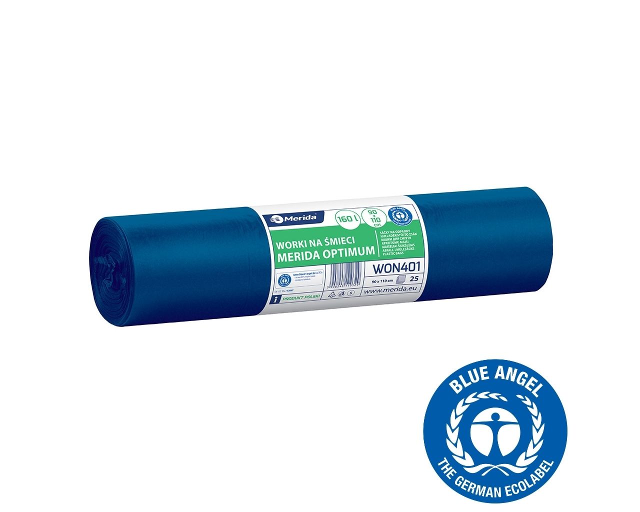 Worki na śmieci 160 l, MERIDA OPTIMUM BLUE ANGEL, niebieskie, 90x110 cm, rolka 25 szt.