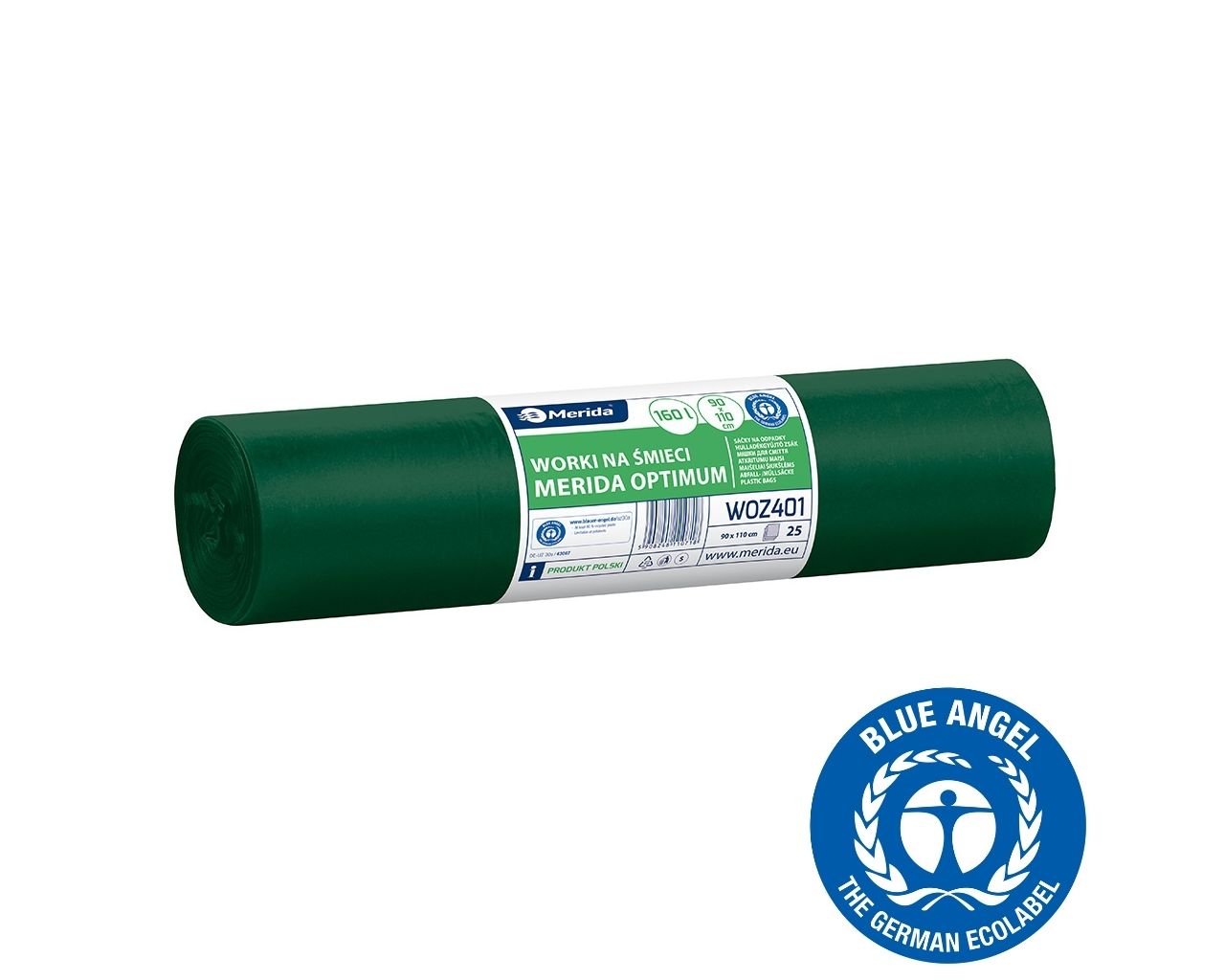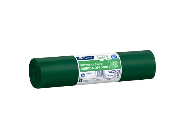 Worki na śmieci 160 l, MERIDA OPTIMUM BLUE ANGEL, zielone, 90x110 cm, rolka 25 szt.