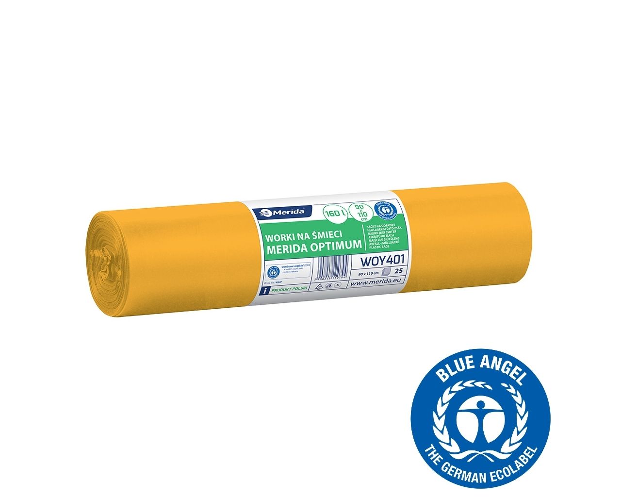 Worki na śmieci 160 l, MERIDA OPTIMUM BLUE ANGEL, żółte, 90x110 cm, rolka 25 szt.