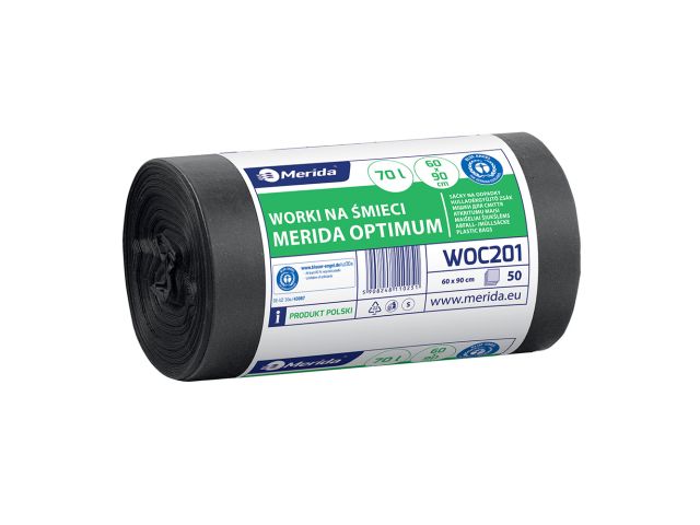 Worki na śmieci 70 l, MERIDA OPTIMUM BLUE ANGEL, czarne, 60x90 cm, rolka 50 szt.