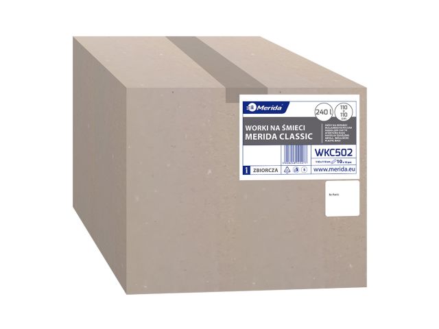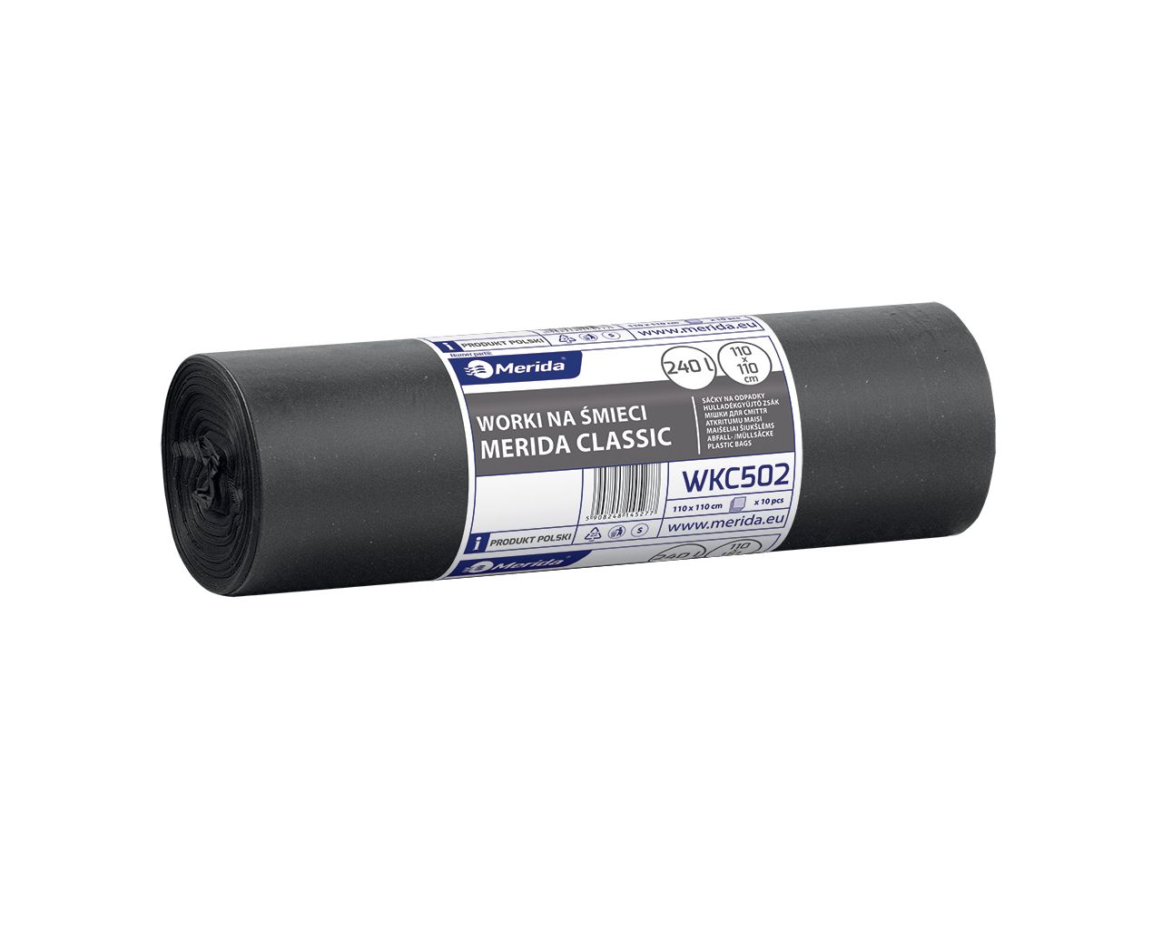 Worki na śmieci MERIDA, 110 x 110 cm, pojemność 240 l., rolka 10 szt., CZARNE, LDPE