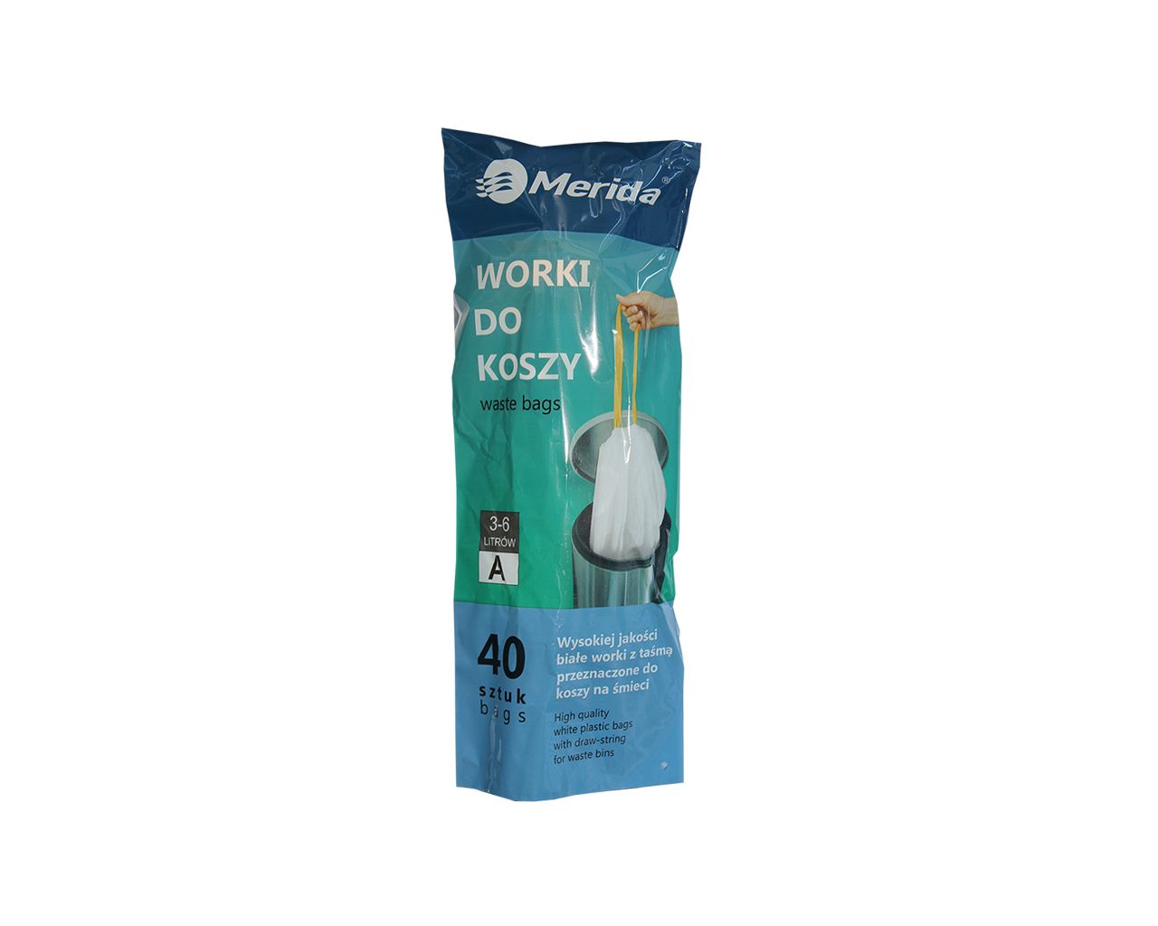 Worki na śmieci z taśmą zapachowe 3-6 l, MERIDA TOP, białe, 40x45 cm, rolka 40 szt.