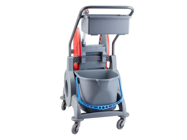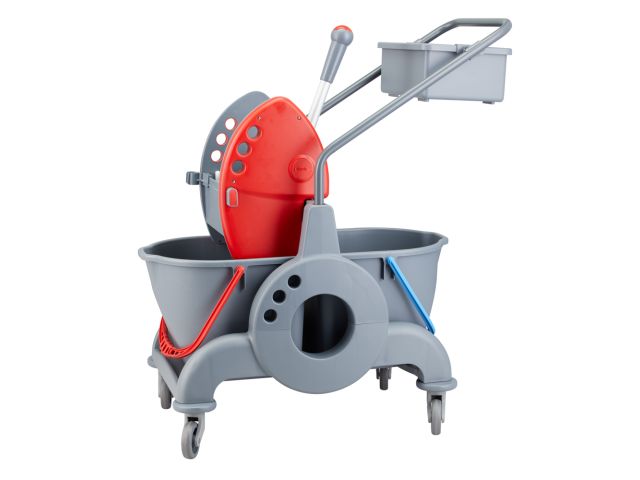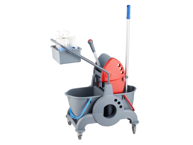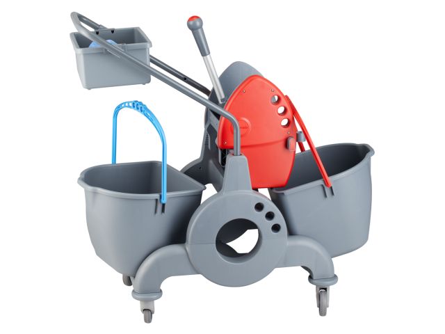 - wyposażony w dwa wiadra o pojemności 15 litrów i kuwetę o pojemności 8 litrów
