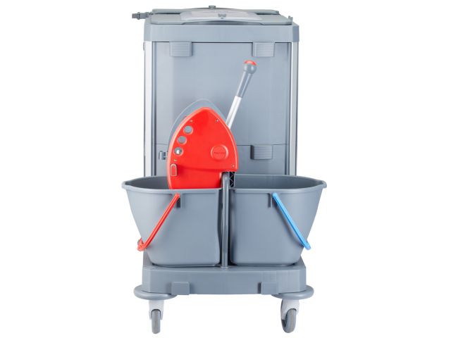 Wózek serwisowy do sprzątania, MERIDA OPERA, 2x wiadro 15l, kuweta 20 l, kuweta 40 l, 3x wiaderko 7l, uchwyt na worek 120l z pokrywą