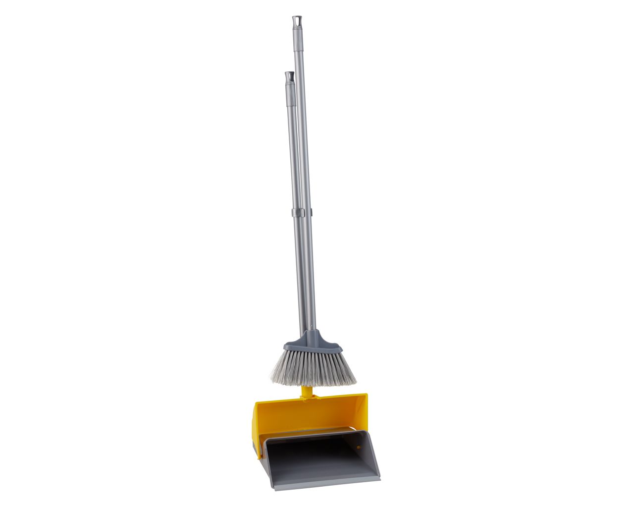 Zestaw do zamiatania wykonany z trwałego tworzywa sztucznego. Umożliwia zamiatanie w pozycji stojącej bez konieczności pochylania się. Zaletą zestawu jest lekkość, specjalnie wyprofilowane włosie miotły, które pozwala na dokładne sprzątanie jedną ręką (w drugiej ręce trzymamy śmietniczkę). Szufelka zakończona gumą, która idealnie przylega do podłoża. Włosie miotły wykonane jest z tworzywa sztucznego.