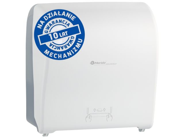 Mechaniczny podajnik ręczników MERIDA SOLID CUT za 100 zł netto przy zakupie 2 kartonów ręczników MERIDA CLASSIC AUTOMATIC RAB301 (12 x 250 m = 3 000 m, 12 500 listków)